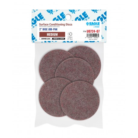 Made of non-woven material infused with aluminum oxide mineral, these surface conditioning discs are ideal for cleaning light oxidation and removing gasket residue from a wide variety of surfaces.